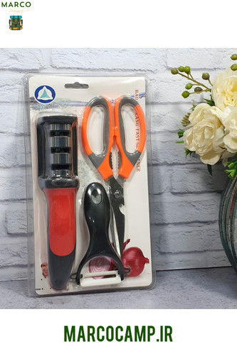 ست سه تکه چاقو تیز کن، قیچی و پوست گیرناموجود